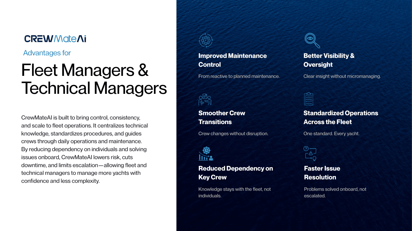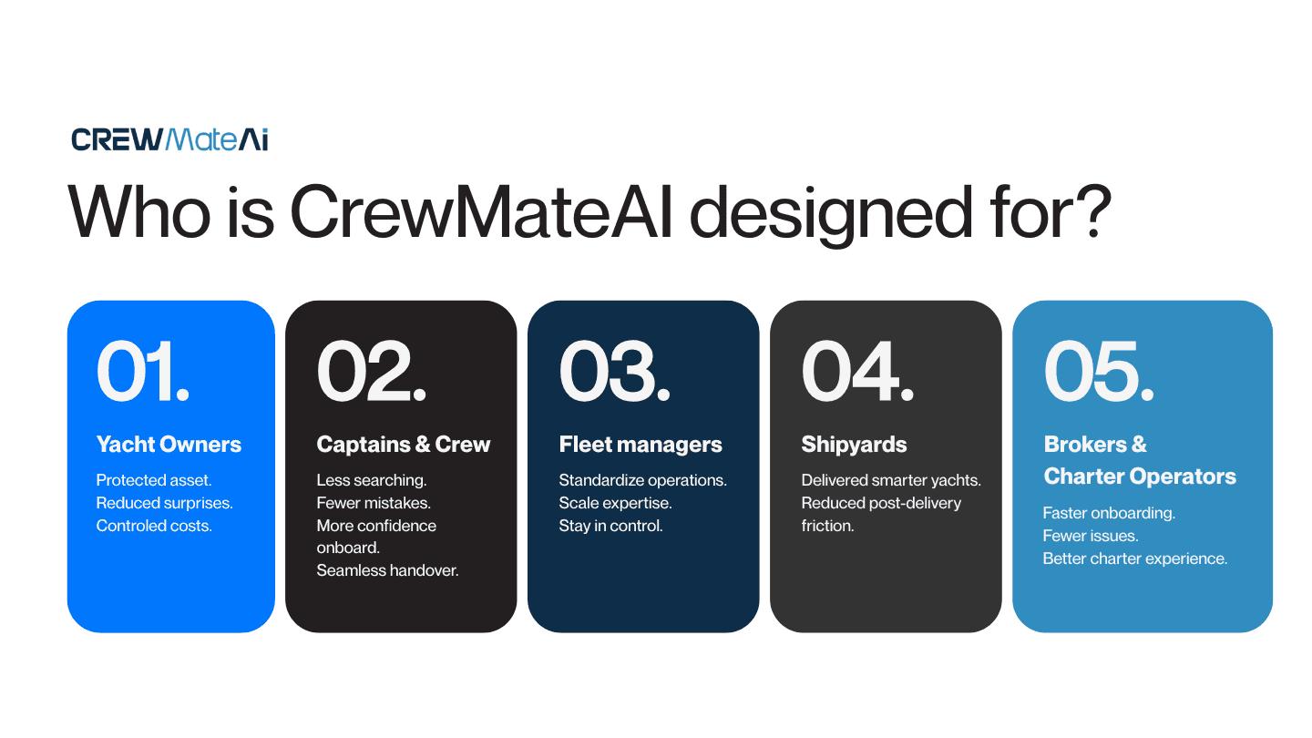 CrewMateAI was designed to simplify how yachts are operated, managed, and handed over.